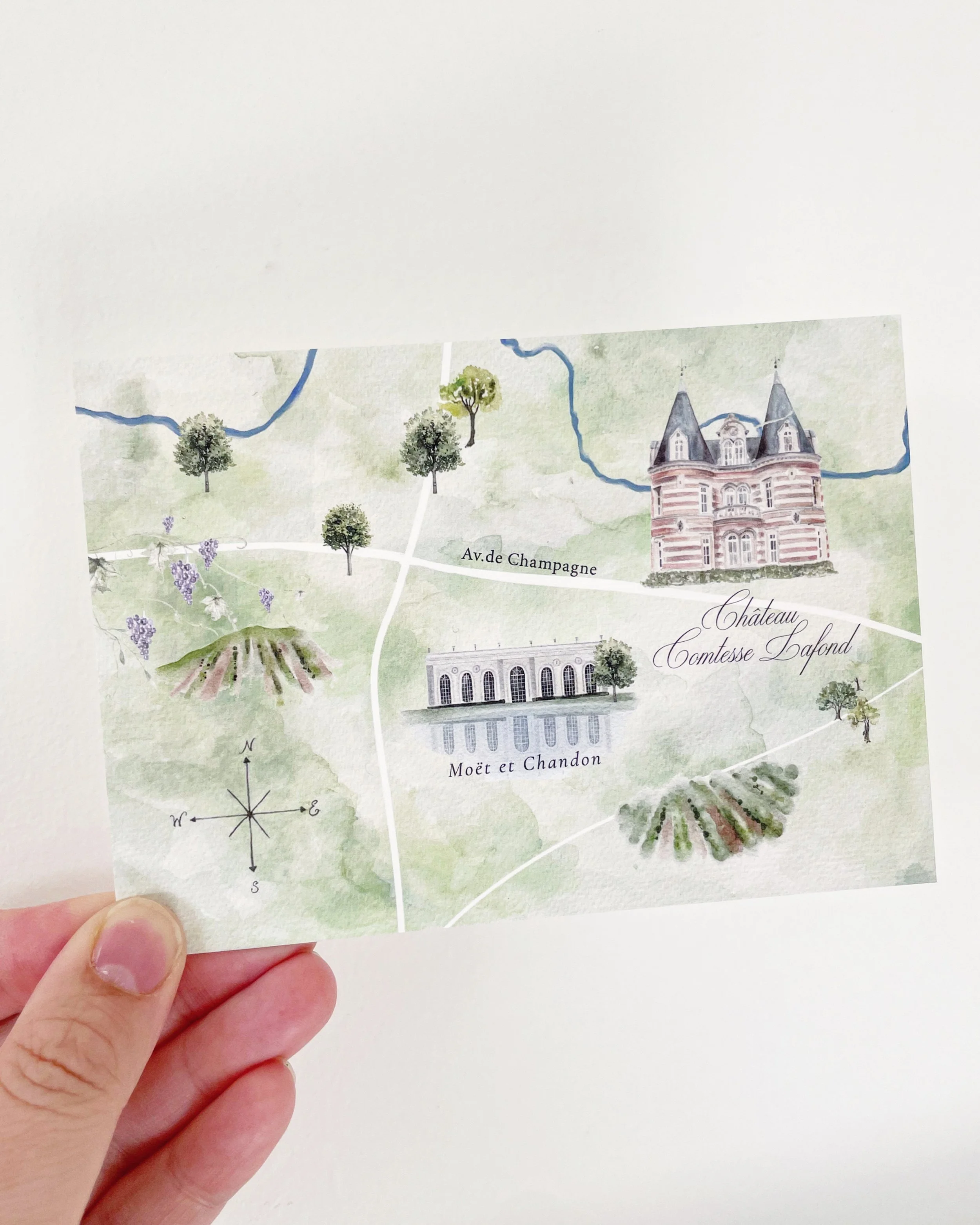 Help your guests get to your venue, with a unique illustrated map. They look stunning included in an invite bundle and can be printed in many different ways. The images below, give you a little idea on the different styles you can have.